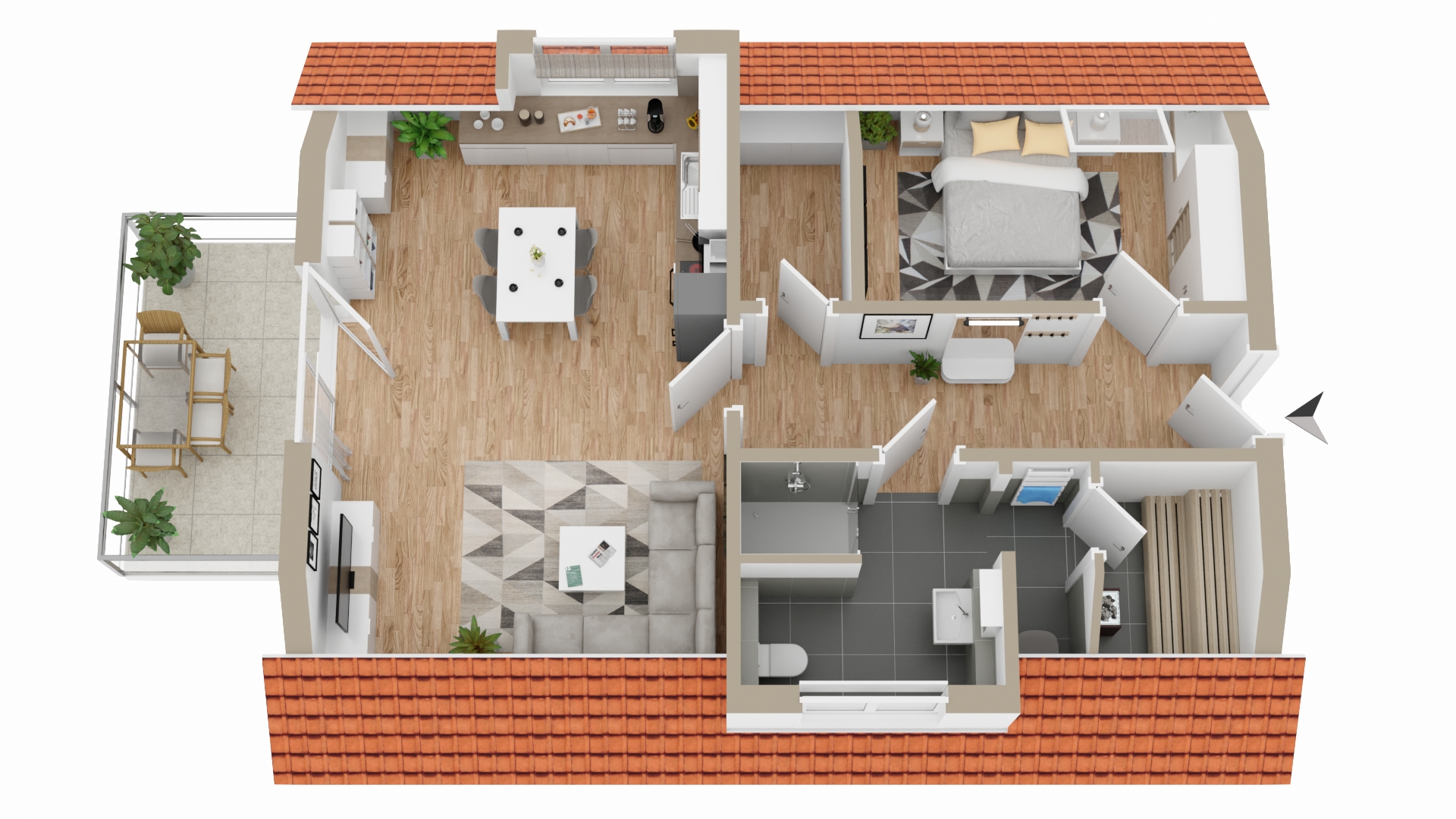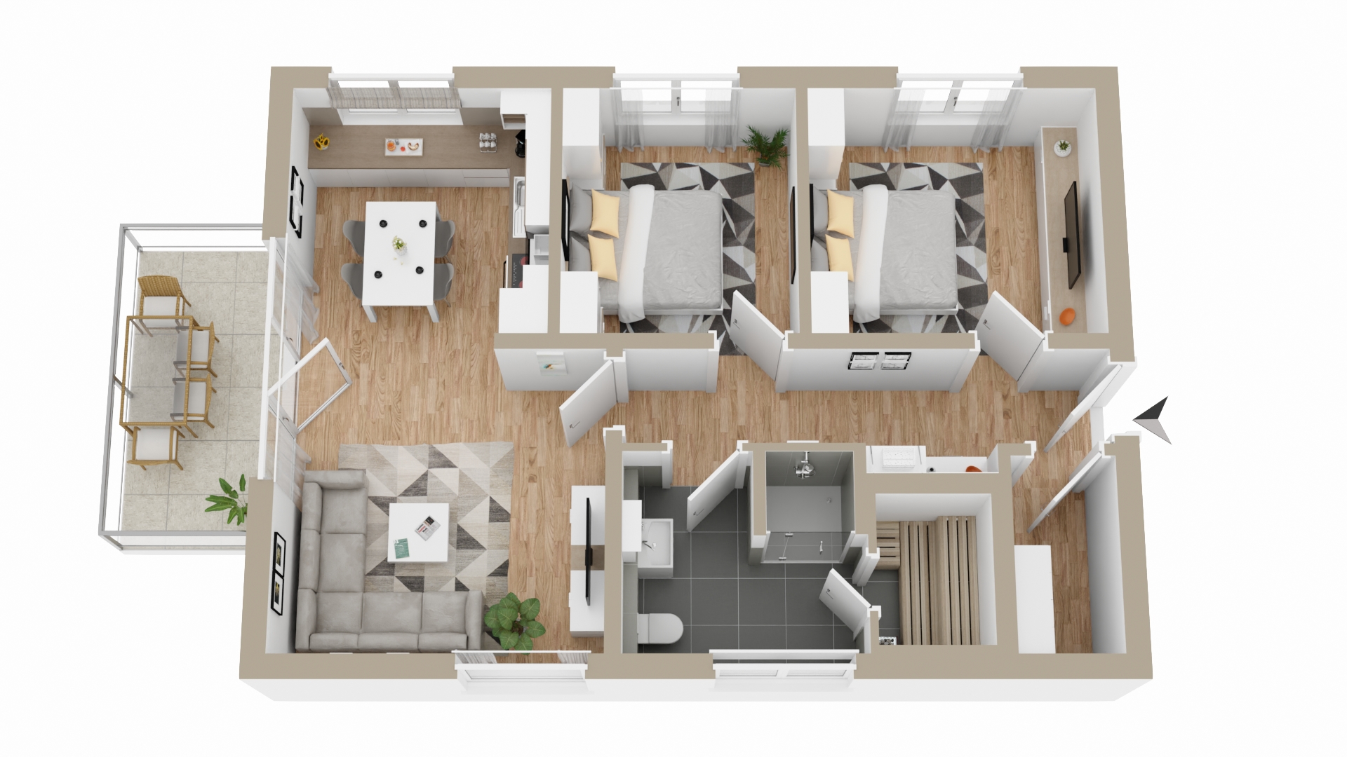 Eigener PKW-Stellplatz, eigene Sauna, wahlweise Seeblick oder Sundowner.